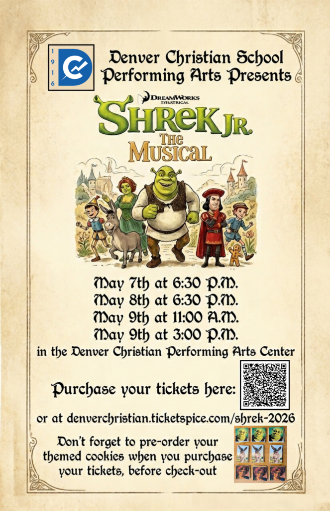 Our 5th-8th grade cast proudly presents Shrek Jr. The Musical; a bright and energetic show full of comedy, music, and imagination, paired with a meaningful story about kindness, courage, and finding your place in the world.